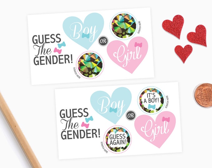 10 Baby Gender Reveal Scratch Off Cards - Guess the gender Pink & Blue As Cute As A Button